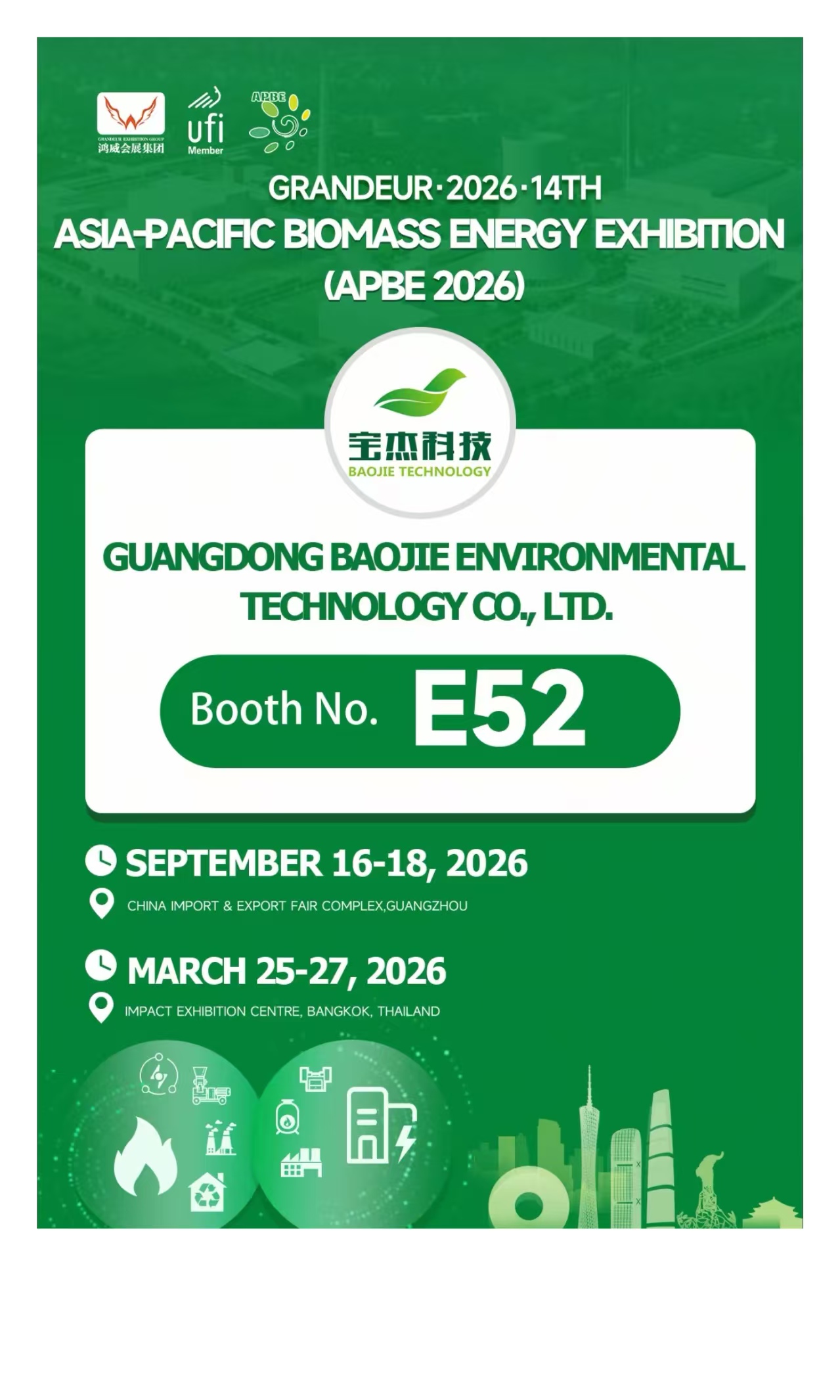 The 2026 Asia-Pacific Biomass Energy Exhibition will grandly open in Bangkok, Thailand! We sincerely invite all new and existing friends to visit the Baojie Environmental booth for guidance and discussion.